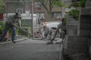 New pavers are installed at NYC’s Wishing Well Community Garden.