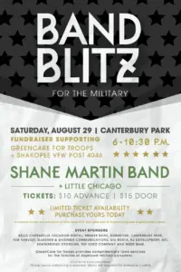Band Blitz for the Military, a fundraiser benefiting Project EverGreen’s GreenCare for Troops and the Shakopee, Minnesota VFW Post 4046, will be held on August 29 from 6 – 10:30 p.m. at Canterbury Park in Shakopee. Because of current requirements for large gatherings, only 250 tickets are available. Ticket prices are $10 in advance and $15 at the door, if available.